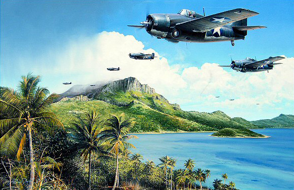 Artist Richard Taylor portrays US Marine Ace Captain Joe Foss as he leads the F4F Wildcats of VMF-121 back