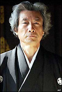 Wearing traditional costume, a defiant Prime Minister Junichiro