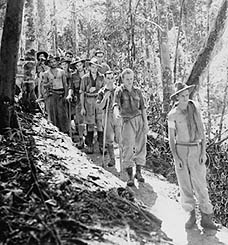 Private Bruce Kingsbury, VC, 2/14th Battalion, led a desperate counter-attack against a ferocious Japanese human wave attack that threatened the survival of the Australians at Isurava. Firing his Bren gun from the hip, Kingsbury charged through a storm of fire at the approaching line of Japanese troops. Kingsbury's gallant charge broke the Japanese line and they fled back into the jungle. He was killed by a bullet at the very moment that the Japanese attack was repulsed. Image courtesy of the Australian War Memorial, Canberra.