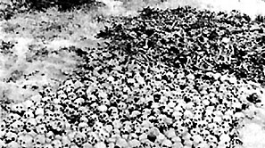 This massive heap of human skulls and bones at Nanking (now Nanjing), together